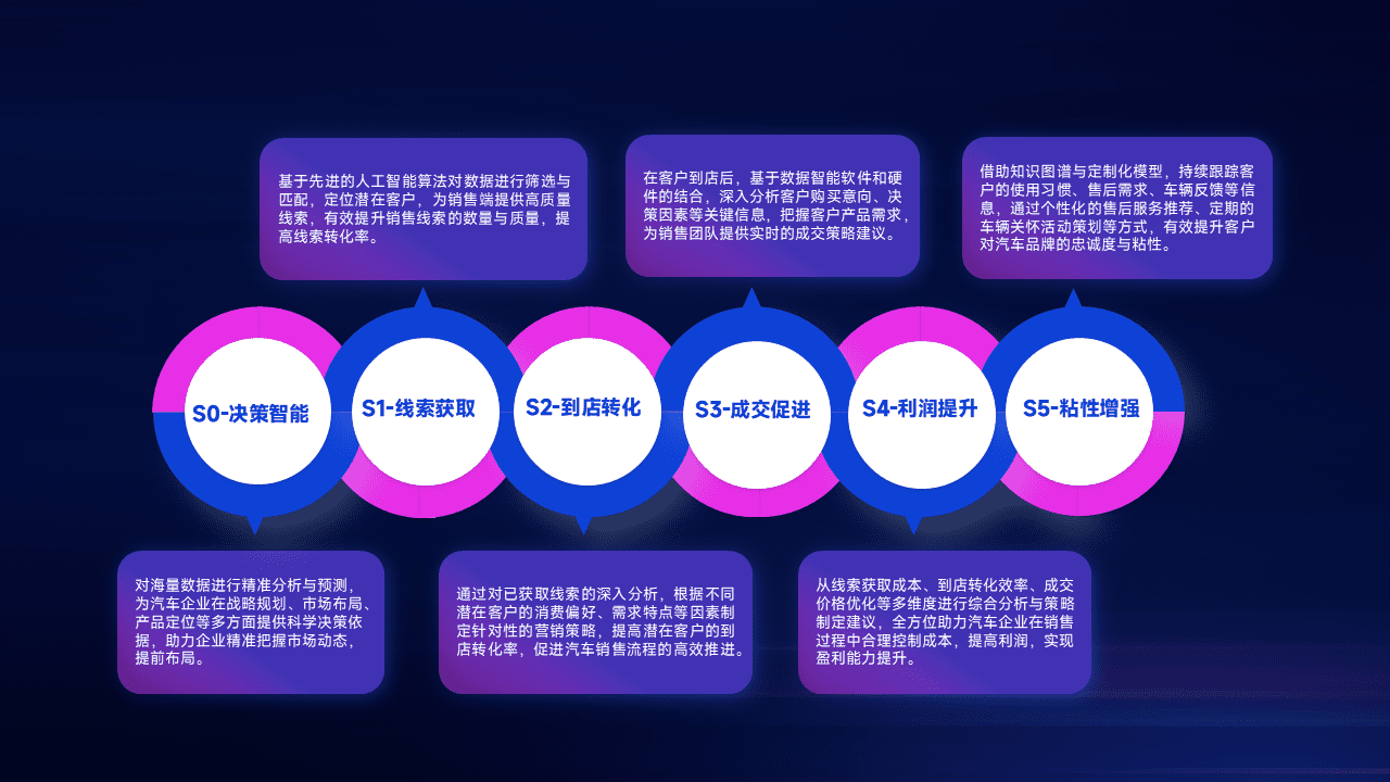 通过拓宽潜在客户来源、、优化线索分配并提高到店转化率,,,以增强销售效率。。。。同时,,利用线索数据不断优化分析模型,,,,有效提升转化率,,,,扩大营销影响力。。。